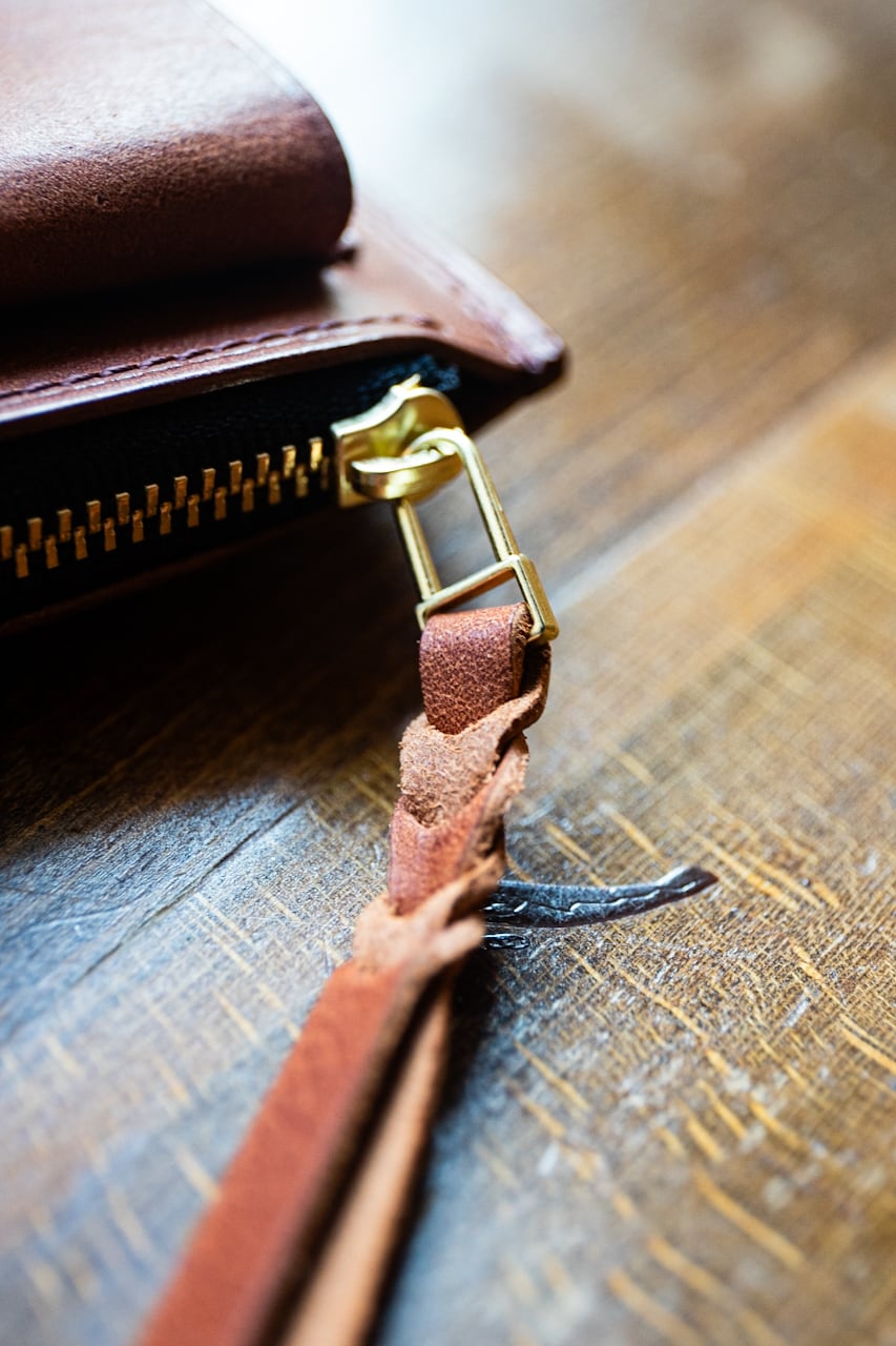 採用したのは、使い込むほどに奥深い光沢が増す国産オイルレザーのキャメル。しっとりと手に馴染む上質な質感は、毎日触れるたびに愛着を深め、経年によって重厚感のある表情へと進化します。