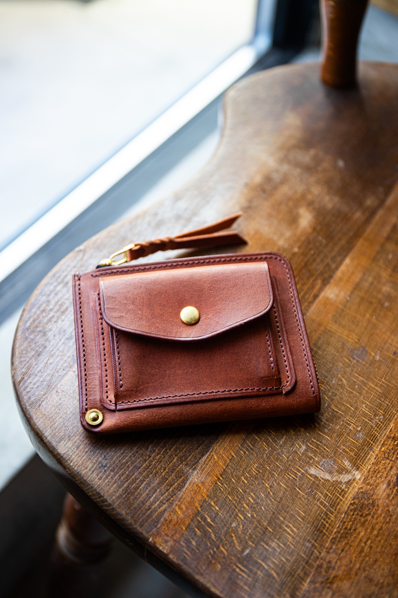 コンパクトな見た目(116mm x 90mm)ながら、日々の使い勝手にも配慮しました。二つ折りの紙幣、数枚のカード、そしてコインをスマートに収納。無駄を削ぎ落とすことで、必要なものだけを持ち歩く身軽さを提供します。