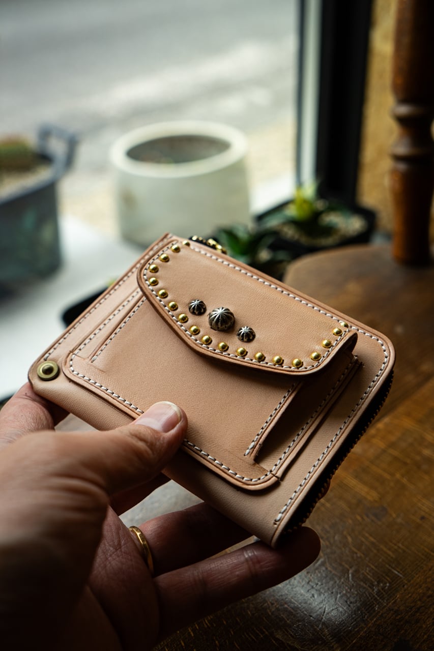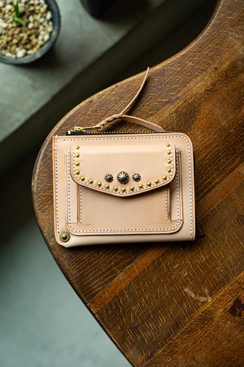 今回は国産サドルレザーをベースに、スタッズを配した仕様。